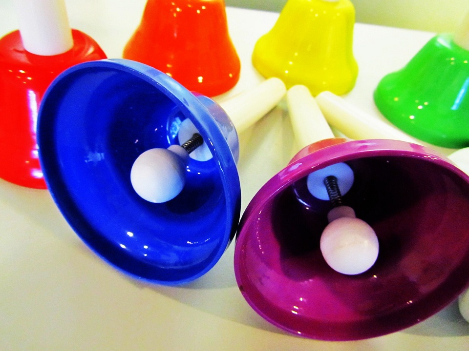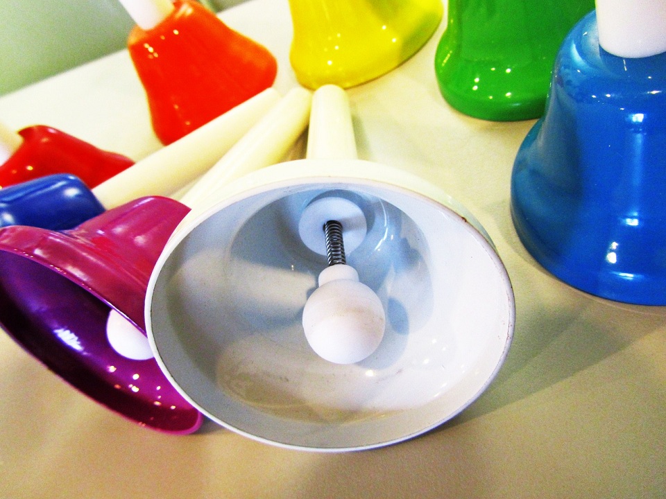 八種六顏色的鐘分別為 d, r, m, f, s, l, t, d' 八個音, 適合合奏使用, 小朋友們每手拿起一個鍾, 配合地奏出旋律, 十分有趣!
