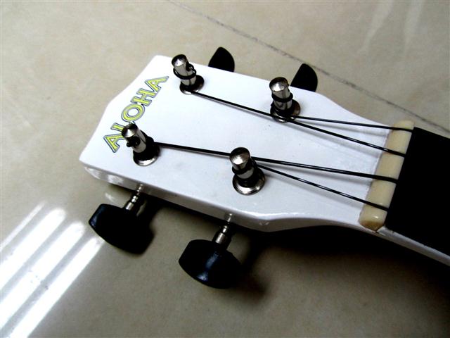 市面有平價如HK$100 至HK$200 左右 的初級型UKULELE, 很多朋友買後發覺音不太好聽, 其實是因為音不準, 左圖是有問題的UKULELE(跟我們的UKULELE 右圖比較), 圈起來的地方, 弦枕造得太高, 以至空弦之後所有格數音不準確,