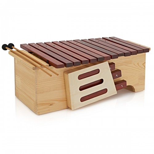 The three chamber wooden frame provides excellent resonance throughout the range of the instrument. Included with this xylophone are necessary F# and Bb bars, making it possible to use in three different keys, and a pair of beaters to enable playing straight out of the box.